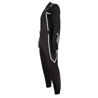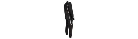 Le confort est renforcé par des empiècements stretch dans le dos et sur les bras, des sangles élastiques aux pieds, ainsi que deux poches latérales pratiques.
